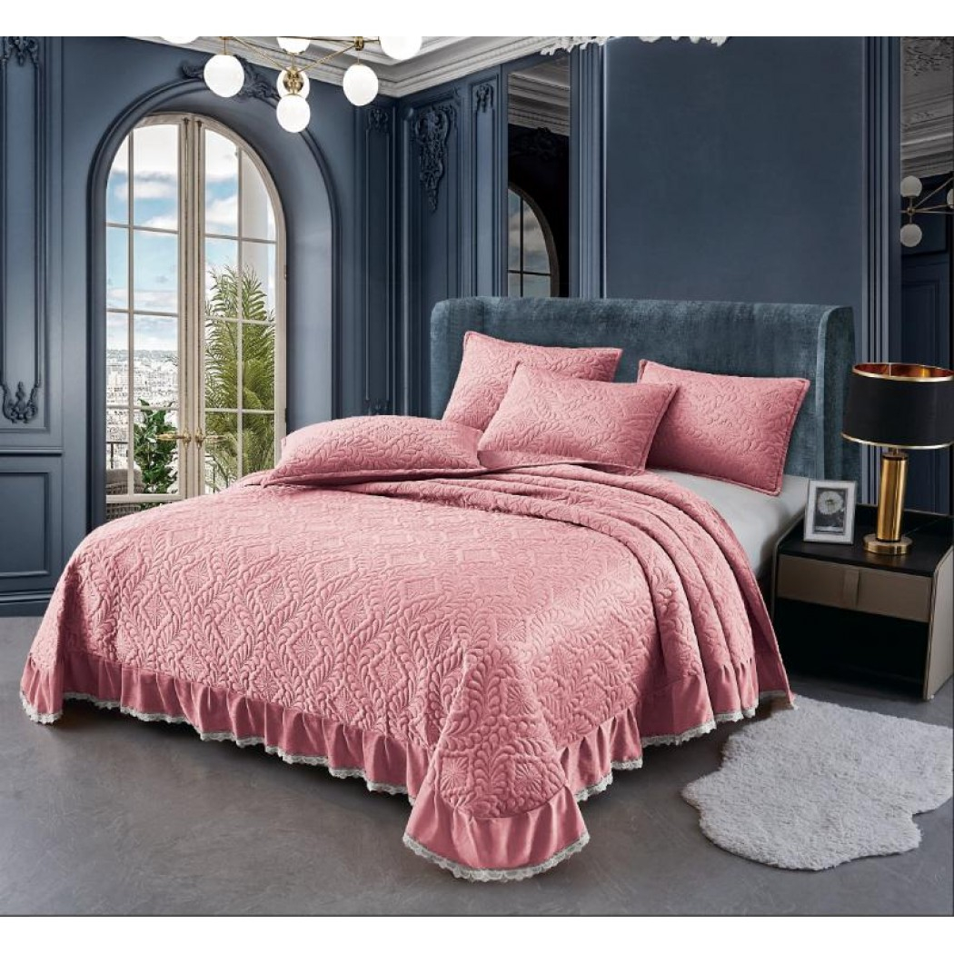 Cuvertură pentru pat dublu confecționată din Catifea cu volanase si dantela pe margine.