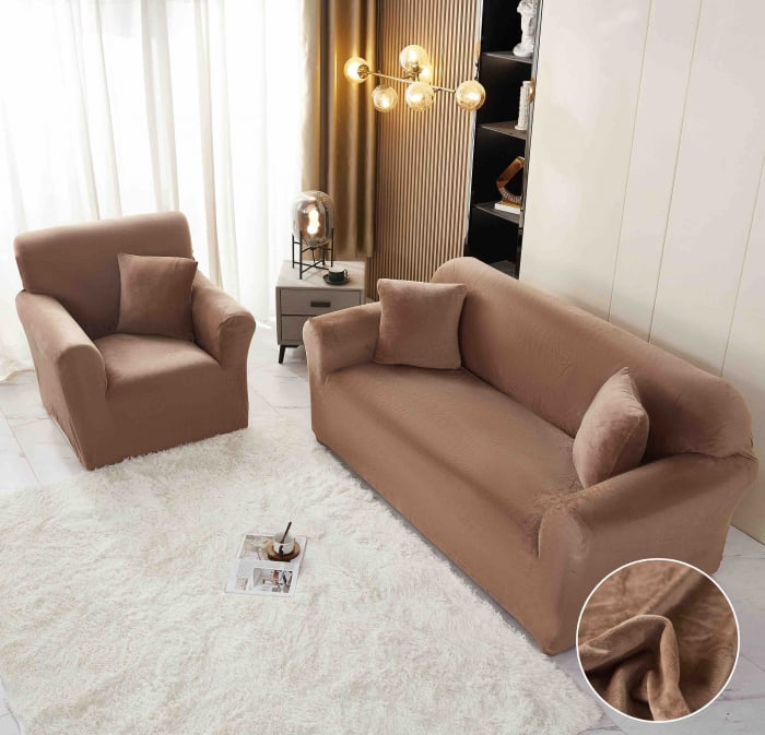 Husele au elastic de jur imprejur la baza, pentru a fi bagate sub canapea, si snururi care se pot lega optional sub canapea pentru o fixare mai buna.