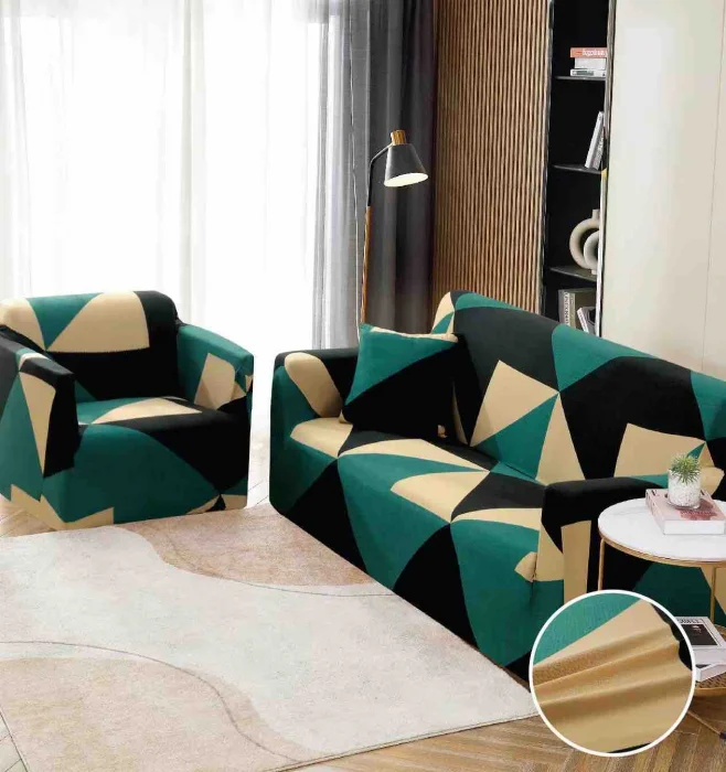 Husa Elastica Pentru Canapea din Lycra 3 Locuri - Verde Negru C737