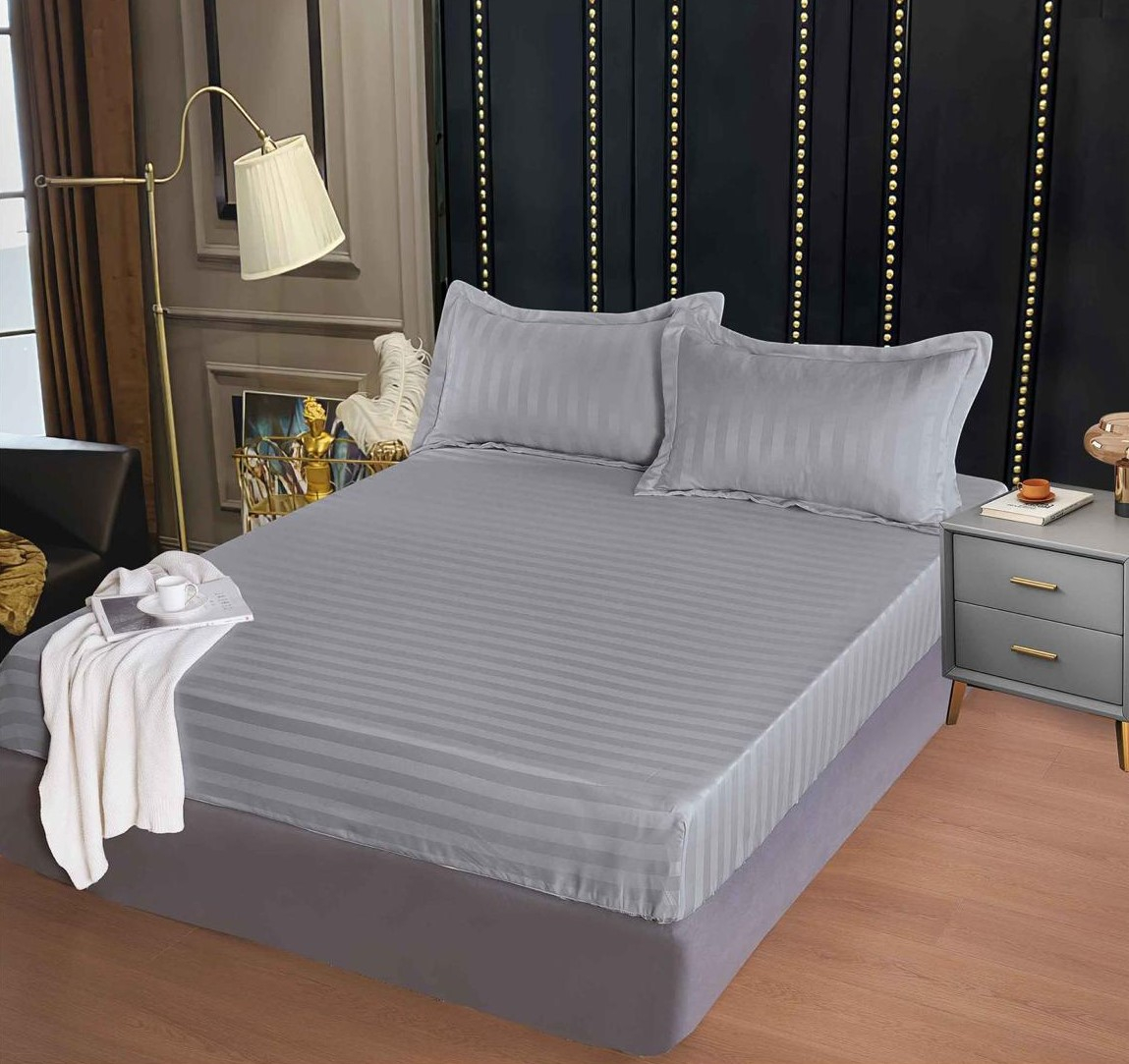 Husa de pat tip Damasc cu Elastic cu 2 fete de perna 160x200 cm