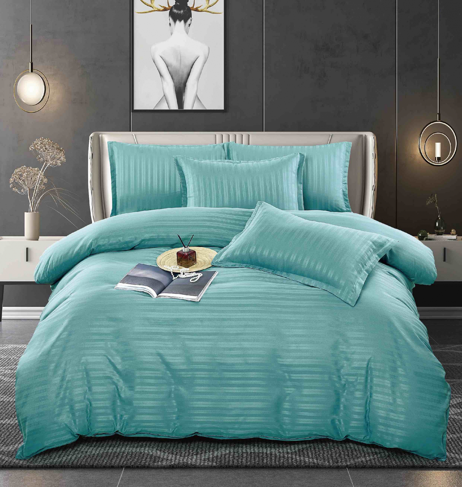 Lenjerie de pat dublu Damasc 6 piese, Cearceaf Normal,Turcoaz C352