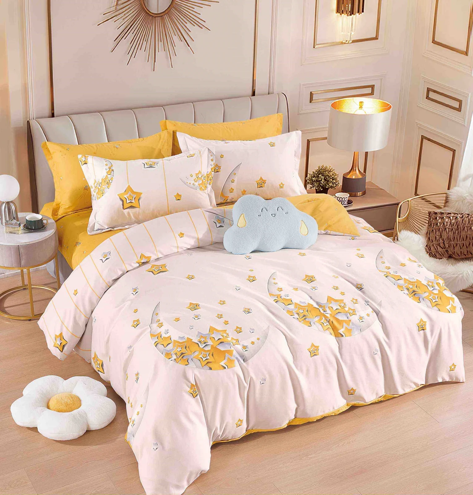 Lenjerie de pat dublu, Bumbac finet, 6 Piese, Jojo Home Galben C206