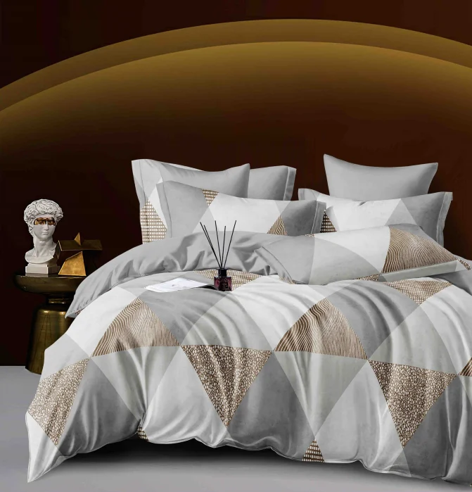Lenjerie de pat dublu, Bumbac finet, 6 Piese, Jojo Home Gri Romburi Bej C171