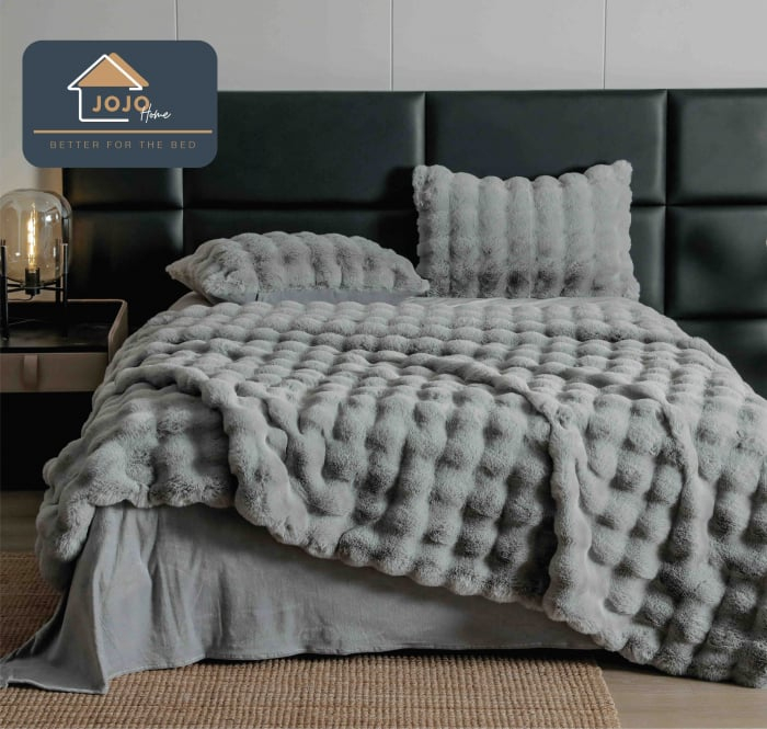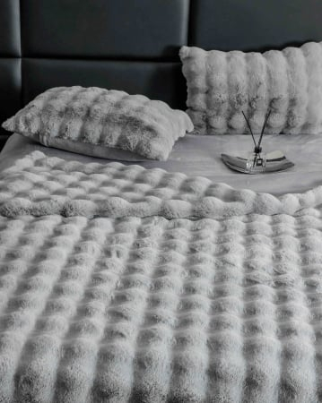 Lenjerie de Pat Dublu, Super Pufoasa, Blanita Artificiala de Iepure, 6 piese Gri Deschis C280