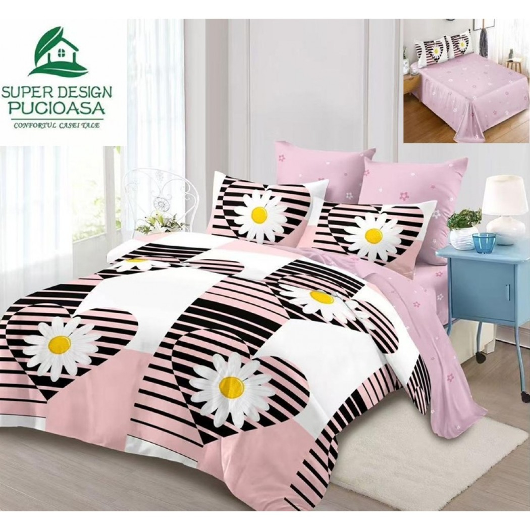 Lenjerie pentru pat dublu din bumbac finet 6 piese C1389