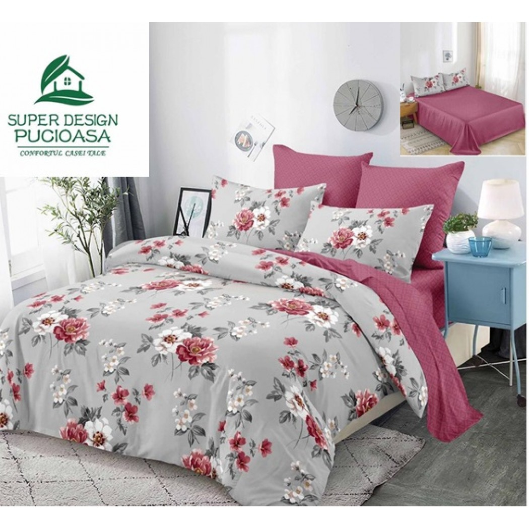 Lenjerie pentru pat dublu din bumbac finet 6 piese C1399