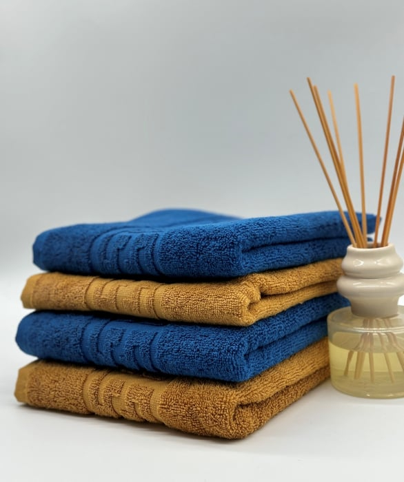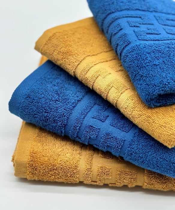 Set 4 Prosoape Bumbac 500 gr/mp, 50x90 cm, Dunga Greceasca, Albastru/Galben Mustar