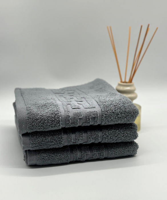 Set 3 Prosoape Bumbac 500 gr/mp, 50x90 cm, Dunga Greceasca, Gri