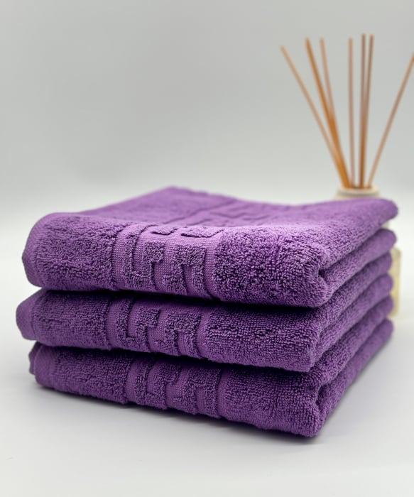 Set 3 Prosoape Bumbac 500 gr/mp, 50x90 cm, Dunga Greceasca, Mov