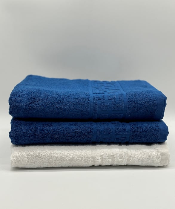 Set 3 Prosoape Bumbac 500 gr/mp, 70x130 cm, Dunga Greceasca, Alb/Albastru
