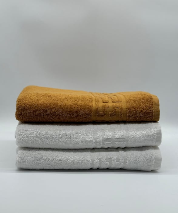 Set 3 Prosoape Bumbac 500 gr/mp, 70x130 cm, Dunga Greceasca, Alb/Galben Mustar