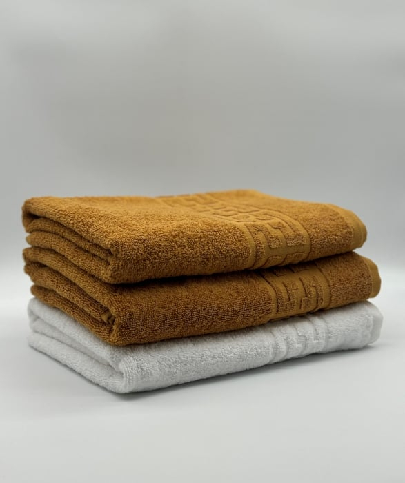 Set 3 Prosoape Bumbac 500 gr/mp, 70x130 cm, Dunga Greceasca, Alb/Galben Mustar
