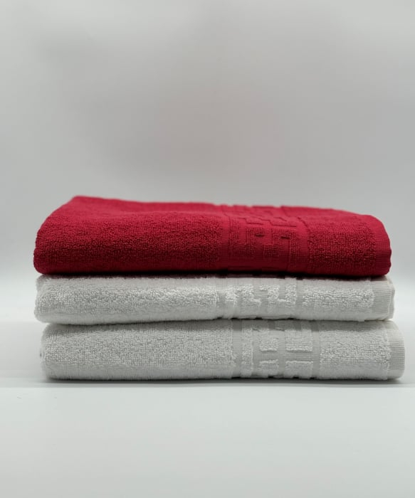Set 3 Prosoape Bumbac 500 gr/mp, 70x130 cm, Dunga Greceasca, Alb/Rosu C1213