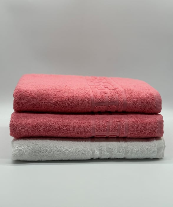 Set 3 Prosoape Bumbac 500 gr/mp, 70x130 cm, Dunga Greceasca, Alb/Roz C1209