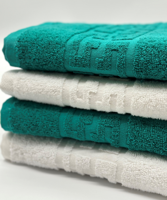Set 4 Prosoape Bumbac 500 gr/mp, 50x90 cm, Dunga Greceasca, Alb/Verde