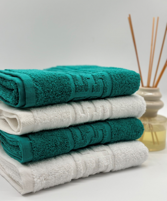 Set 4 Prosoape Bumbac 500 gr/mp, 50x90 cm, Dunga Greceasca, Alb/Verde C1163