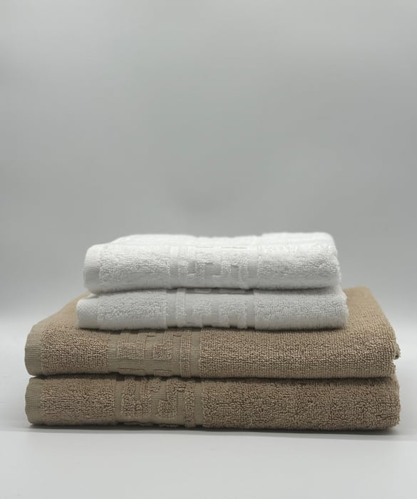 Set 4 Prosoape Bumbac 500 gr/mp, Dunga Greceasca, Alb/Bej