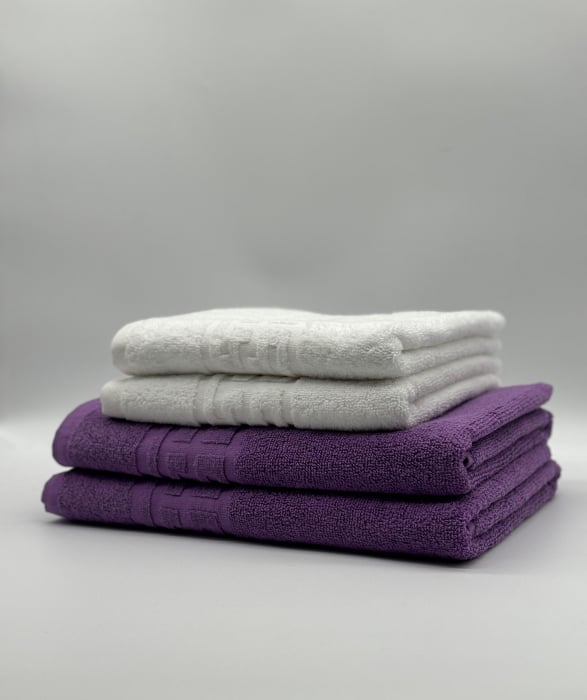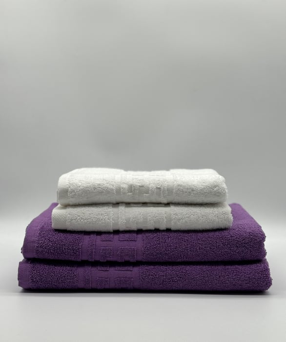 Set 4 Prosoape Bumbac 500 gr/mp, Dunga Greceasca, Alb/Mov