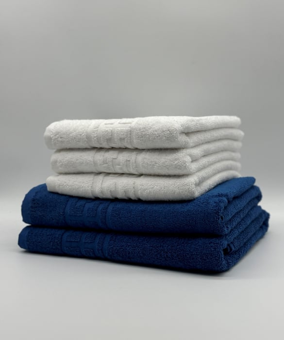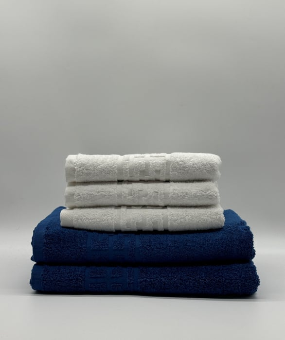 Set 5 Prosoape Bumbac 500 gr/mp, Dunga Greceasca, Alb/Albastru