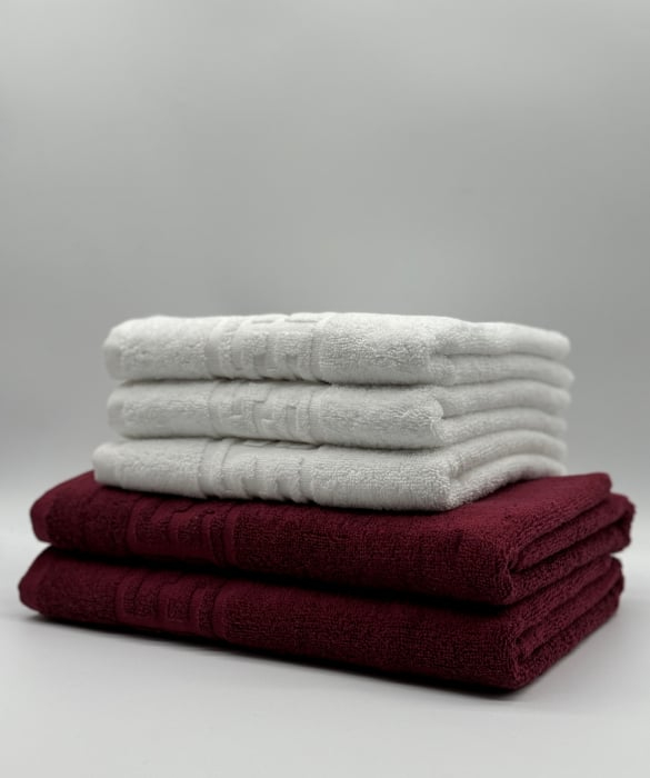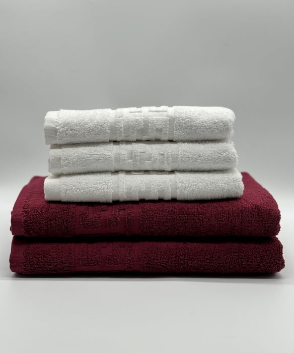 Set 5 Prosoape Bumbac 500 gr/mp, Dunga Greceasca, Alb/Grena C1251