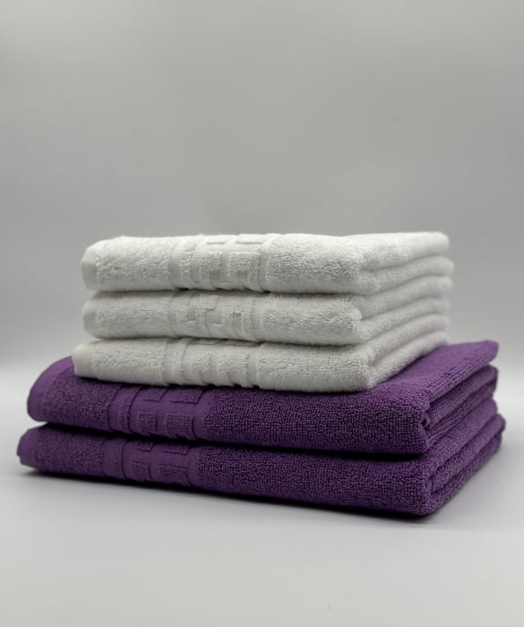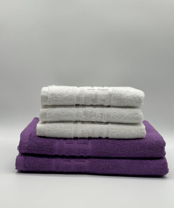 Set 5 Prosoape Bumbac 500 gr/mp, Dunga Greceasca, Alb/Mov