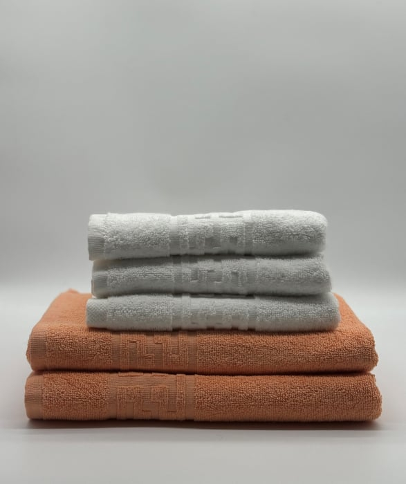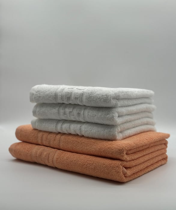 Set 5 Prosoape Bumbac 500 gr/mp, Dunga Greceasca, Alb/Portocaliu