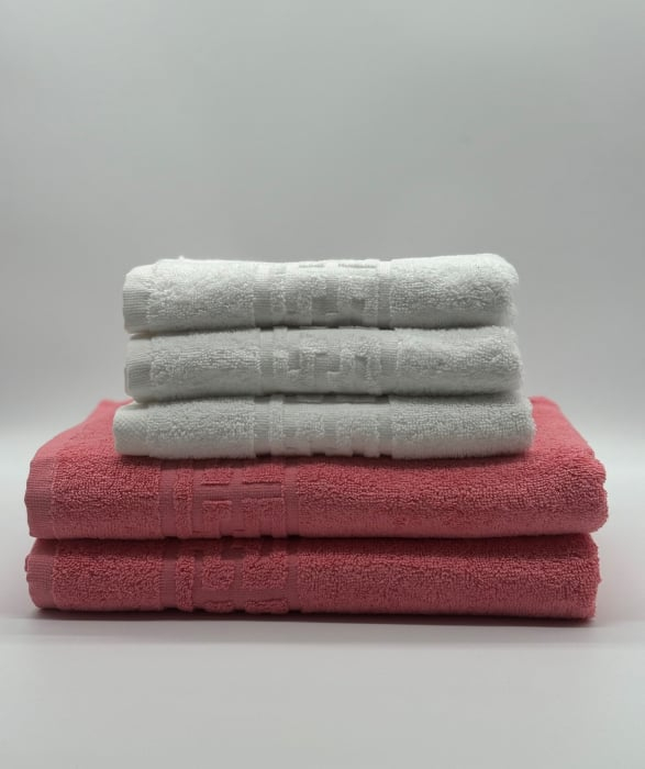 Set 5 Prosoape Bumbac 500 gr/mp, Dunga Greceasca, Alb/Roz