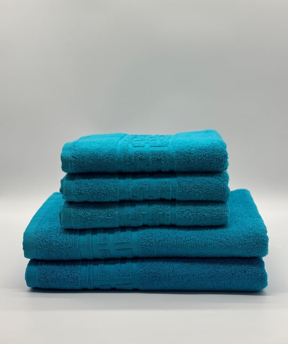 Set 5 Prosoape Bumbac 500 gr/mp, Dunga Greceasca, Turcoaz C1229
